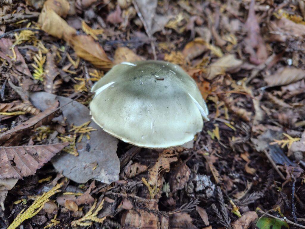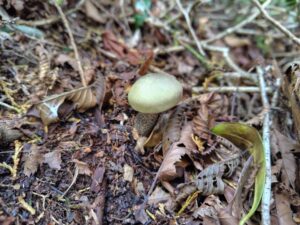 幼菌ではあるが、柄に斑模様が出るシメジに似たキノコを三重県の某所で発見した